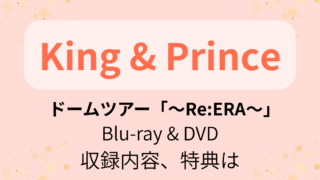 リリース 【King & Prince】ドームツアーBlu-ray&DVD「~Re:ERA~ in DOME」の収録内容、特典は? King & Prince(キンプリ)が2025年10月22日(水)、Blu-ray & DVD「LIVE TOUR 24-25 ~Re:ERA~ in DOME」を発売します。2025年5月から行われたドームツアーから、東京ドーム公演を収... 2025.08.27 King & Princeリリース