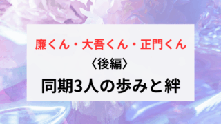 ライブ・舞台 【永瀬廉・西畑大吾・正門良規】〈後編〉いつから仲良し?同期3人組の歩みと絆 King & Prince(キングアンドプリンス/キンプリ)の永瀬廉くん、なにわ男子の西畑大吾くん、Aぇ! group(ええグループ)の正門良規くん。この記事は、仲良し同期3人の歩みと絆についての後編です。>>前編の記事はこちら3人の歩み〈... 2024.08.23 Aぇ! GroupKing & Princeなにわ男子テレビ・SNSライブ・舞台