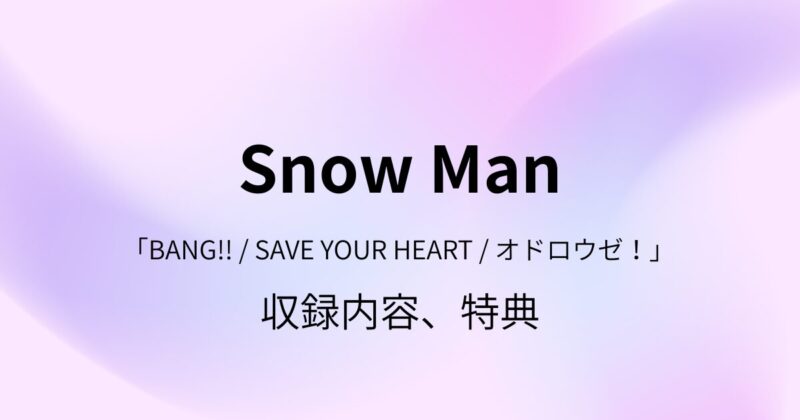 Snow Man(スノーマン)が2026年4月29日(水・祝)、 13thシングル「BANG!! / SAVE YOUR HEART / オドロウゼ!」をリリースします。