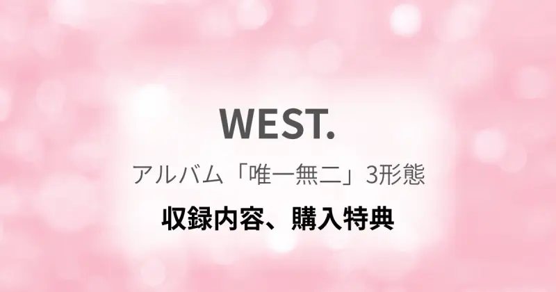 この記事では、WEST.の新アルバム「唯一無二」について、収録内容や特典、おすすめをご紹介しました。