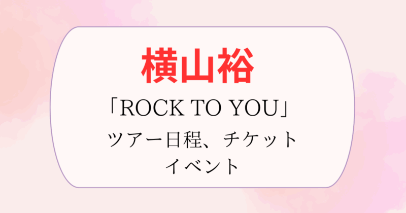 横山裕くんの全国ライブツアー「ROCK TO YOU LIVE TOUR」は2025年7月26日(土)の東京公演からスタートし、全国11都市で開催予定です。